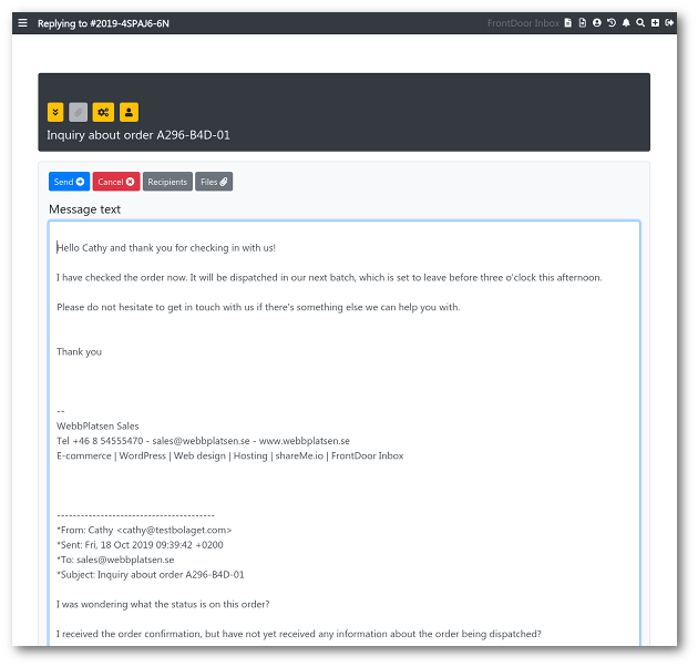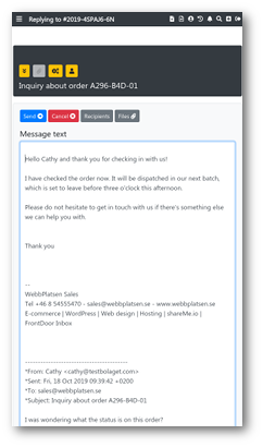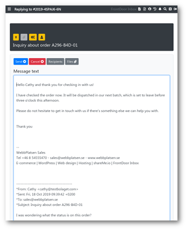 From start to finish, FrontDoor Inbox helps you keep track of the entire conversation. FrontDoor Inbox is suitable for use in helpdesks, service centers, the front office, receptions, customer support centers, call centers, booking offices, or in general situations where you need to keep track of conversations.